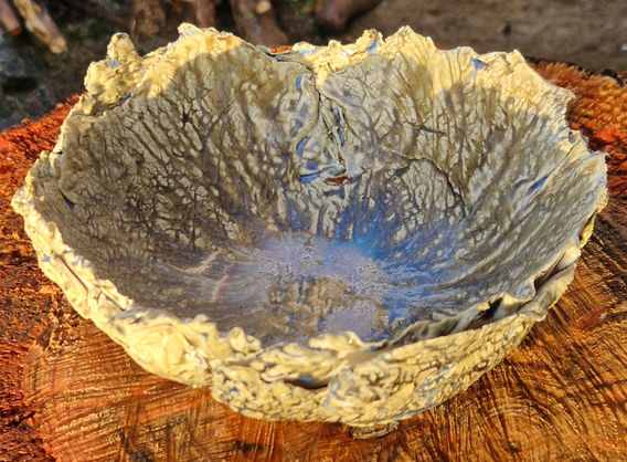 I'm still working on my style but I enjoy creating contemporary textural landscapes on the surfaces of my vessels, both ceramics and glass. Some of my pieces are functional but most are designed to be sculptural art.